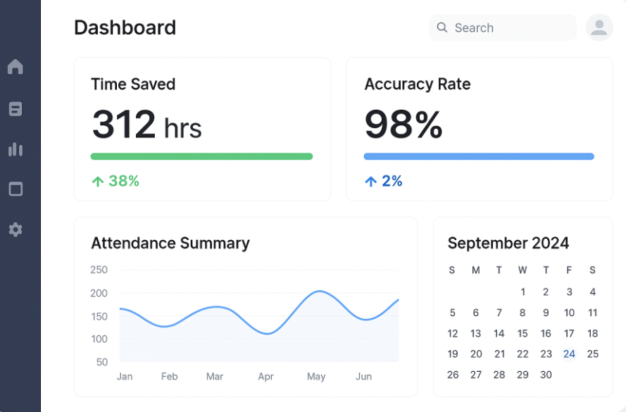 Manual registers are error-prone. With attendance management systems, biometric and RFID logs ensure near-perfect accuracy.
